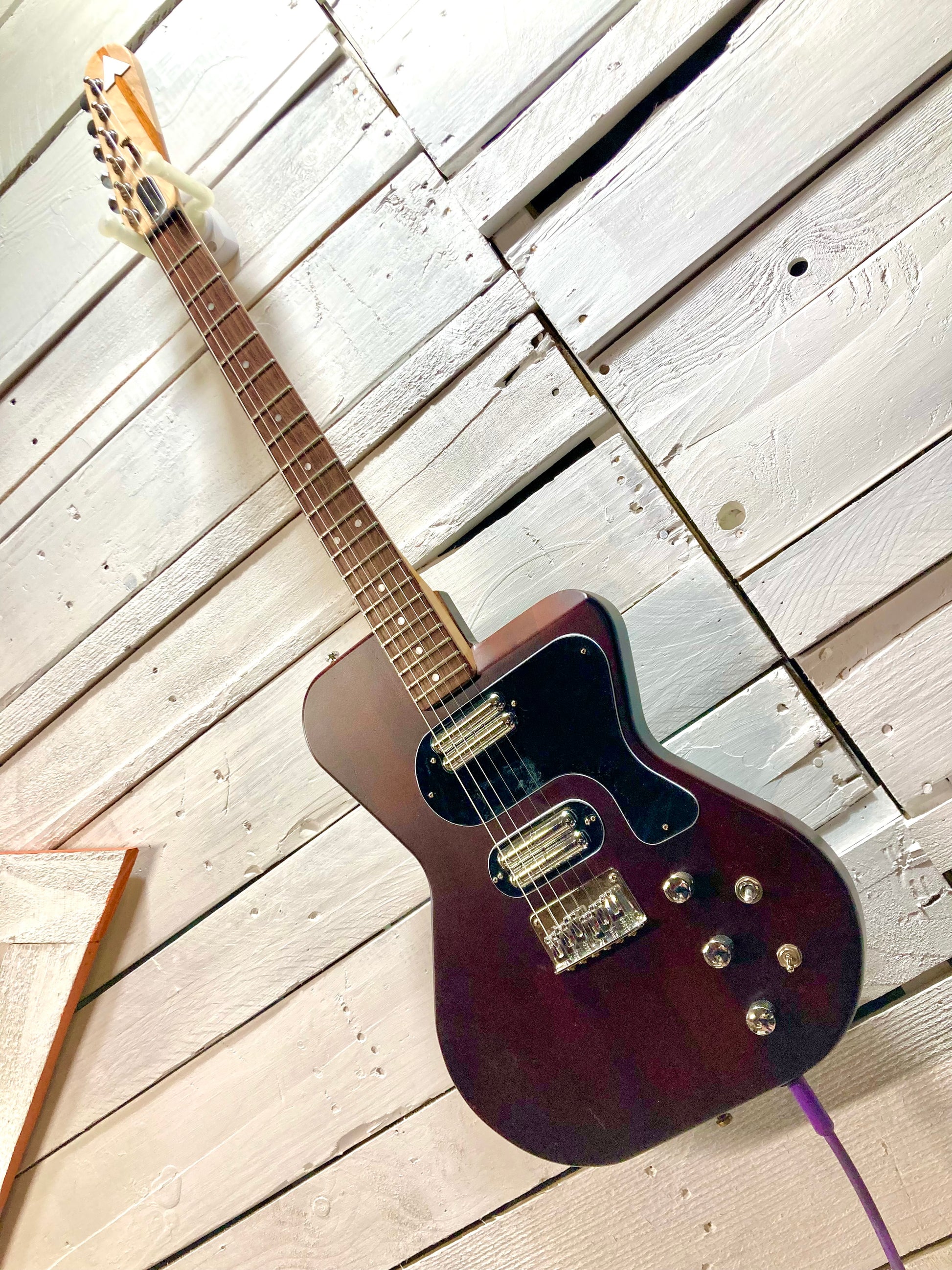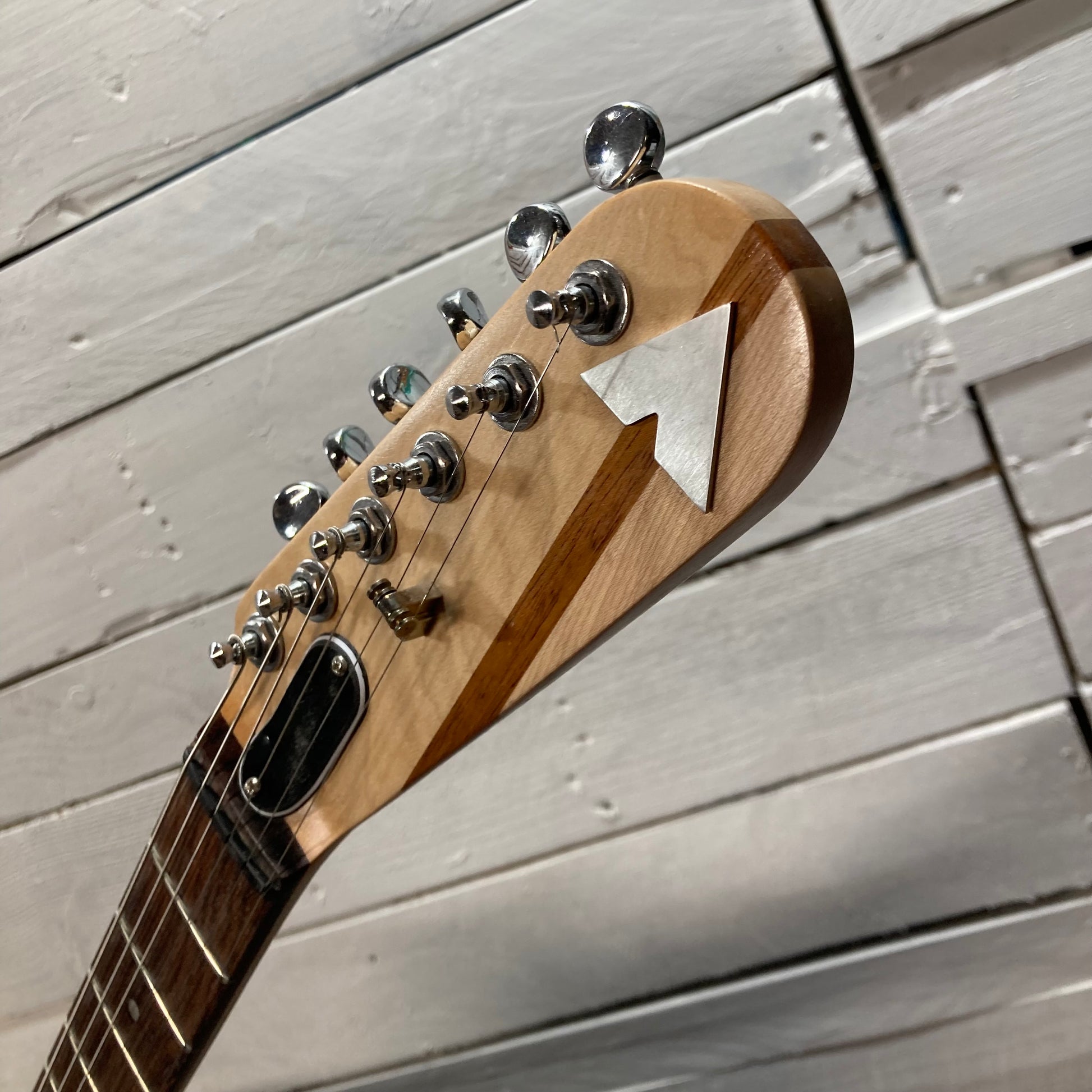 a Striking modern shape with a few nods to traditional design. The projector combines futuristic design with functional elements. The dual alnico 5 lipstick humbuckers are controlled by a selector switch, a two band passive filter, a master volume, and a master coil split. Truly the projectors electronics are more versatile and elegant in design than guitars that are many times its price.