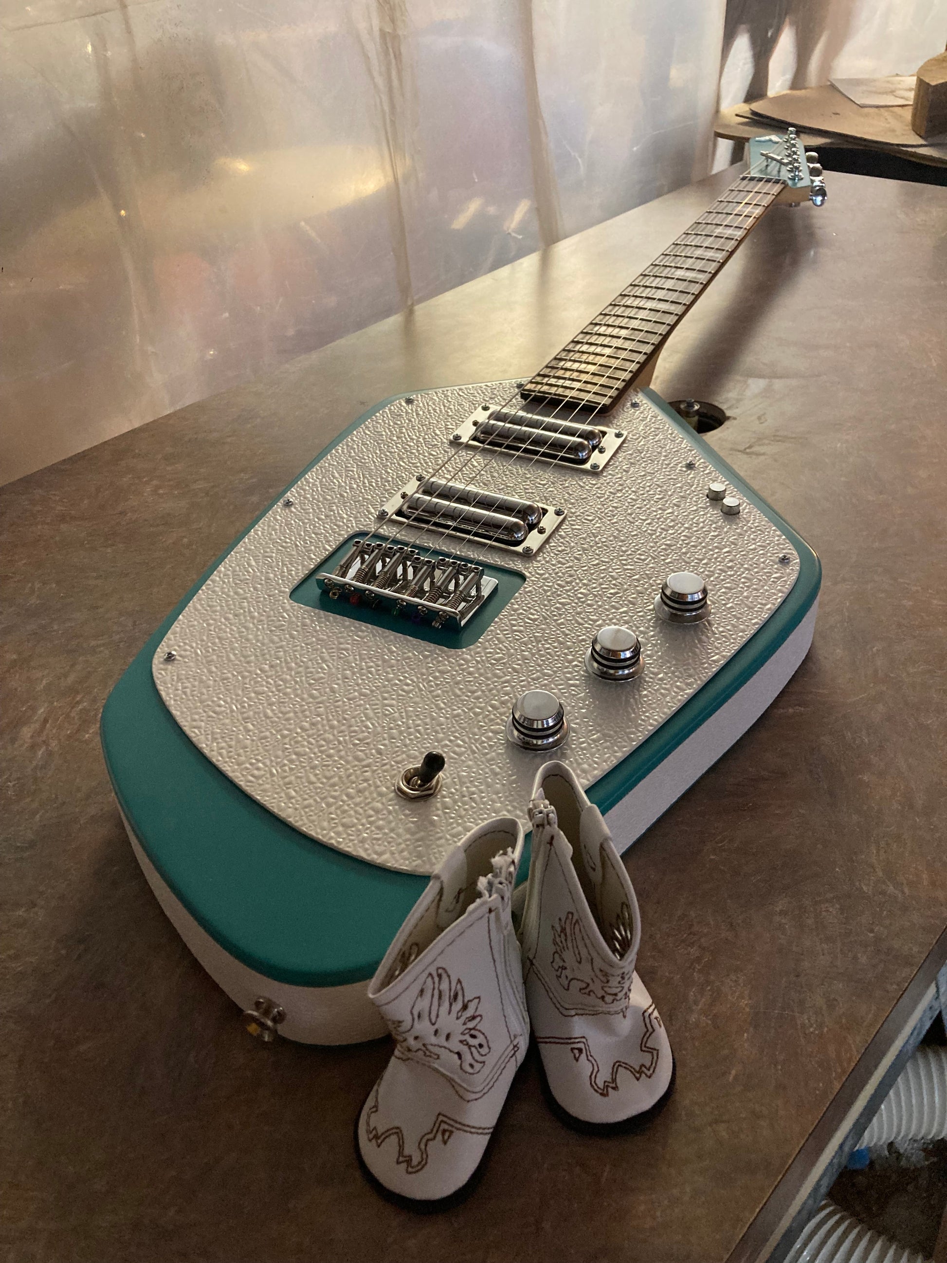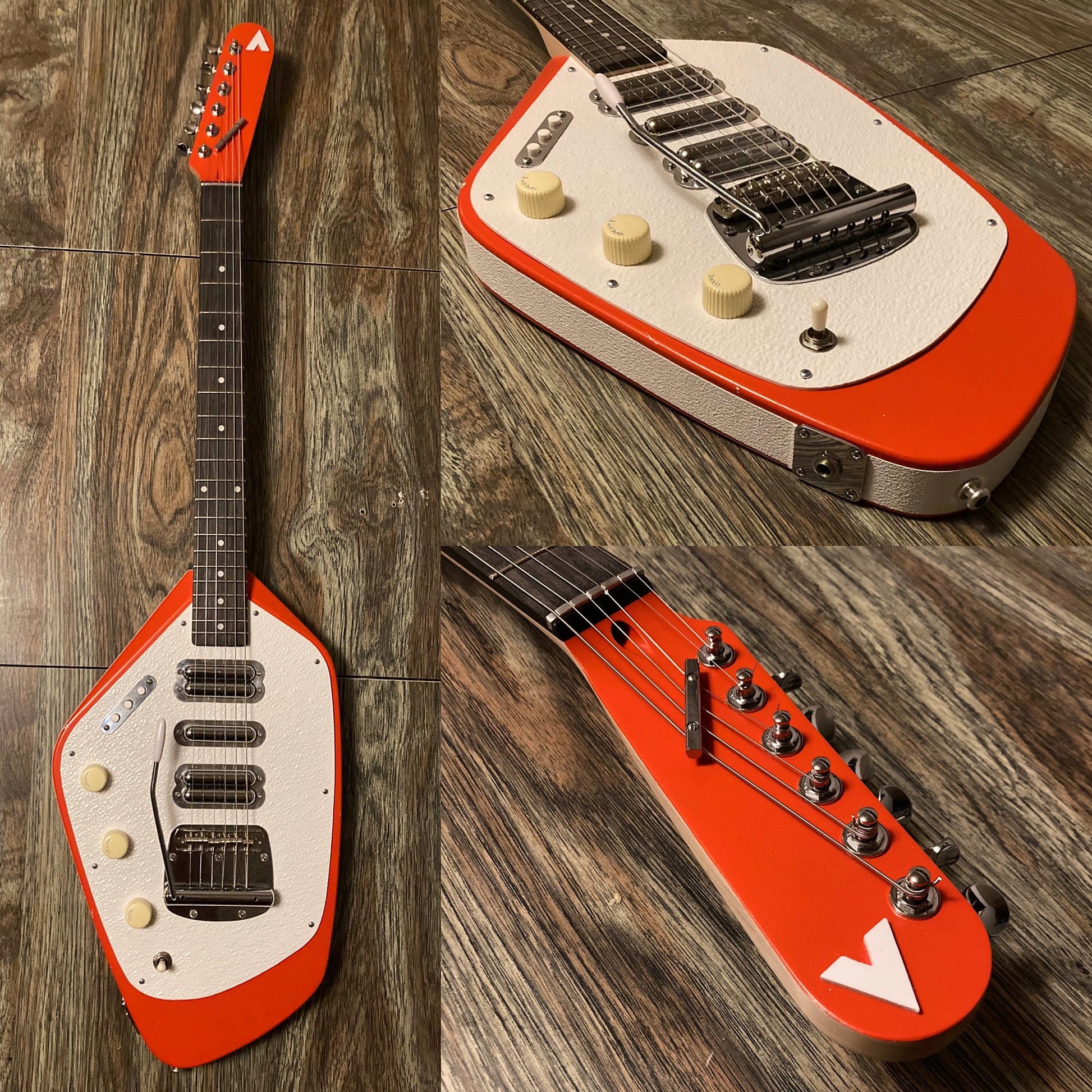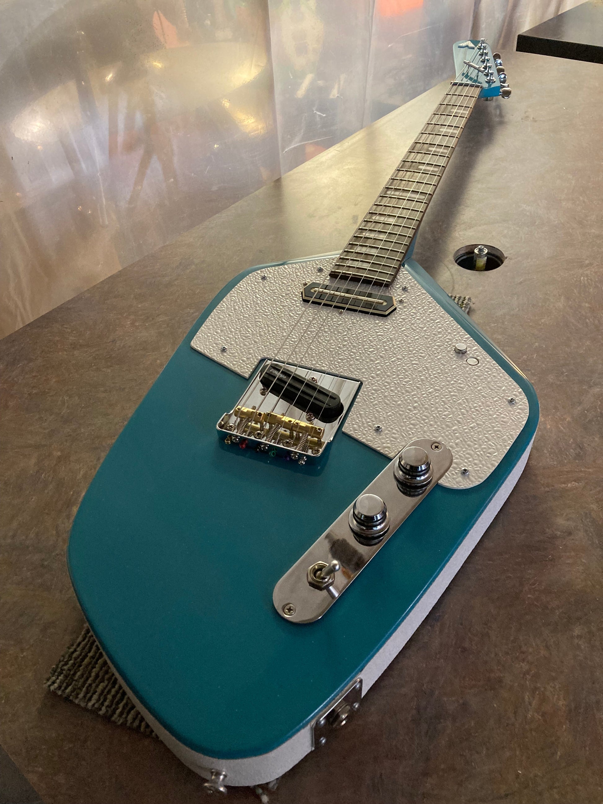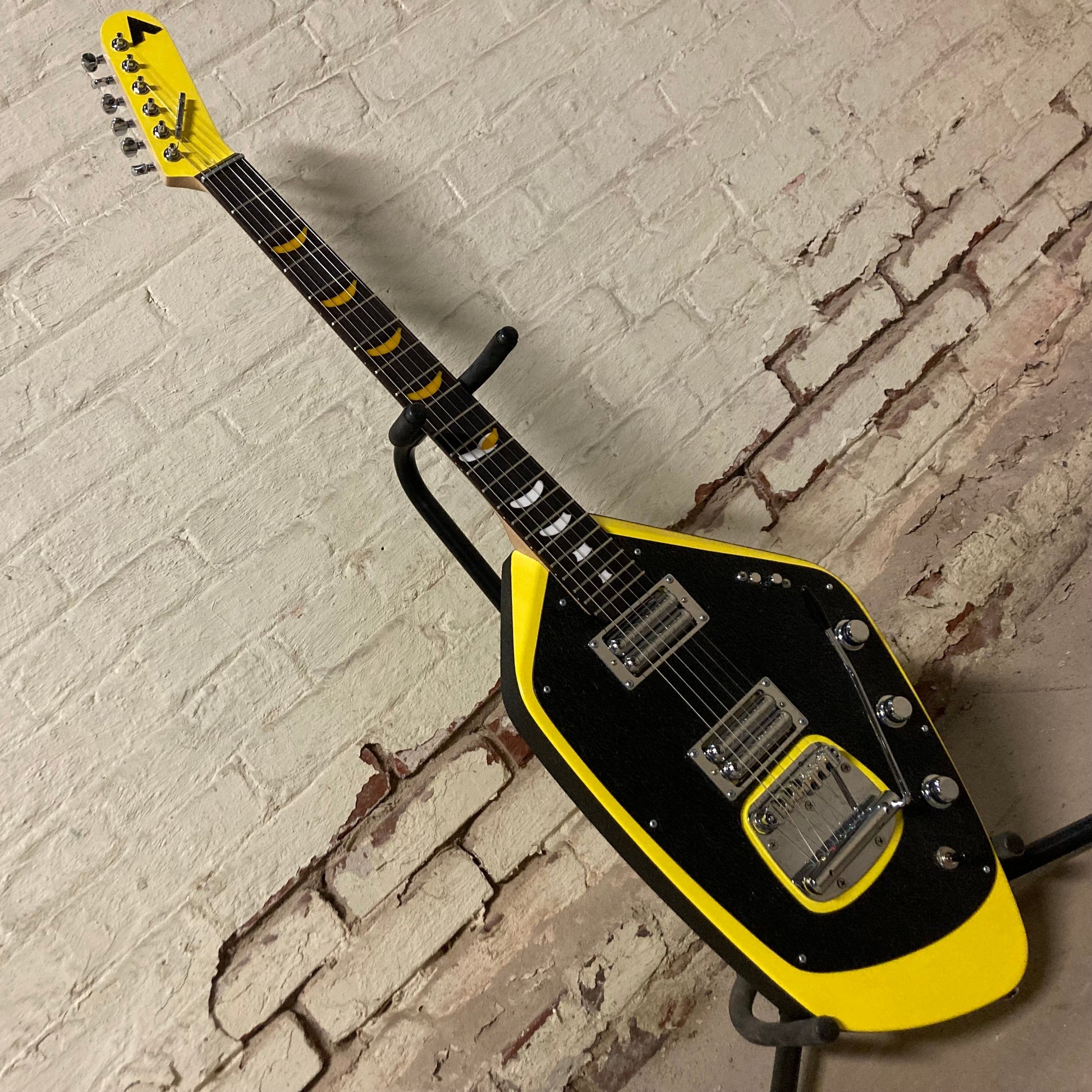 This guitar takes the best parts from two legendary mid century modern designs and adds contemporary touches to give the player an unmatched palette of classic guitar tones. Its hollow body design gives the instrument light weight while its hardwood frame and spine give it a full crip attack.